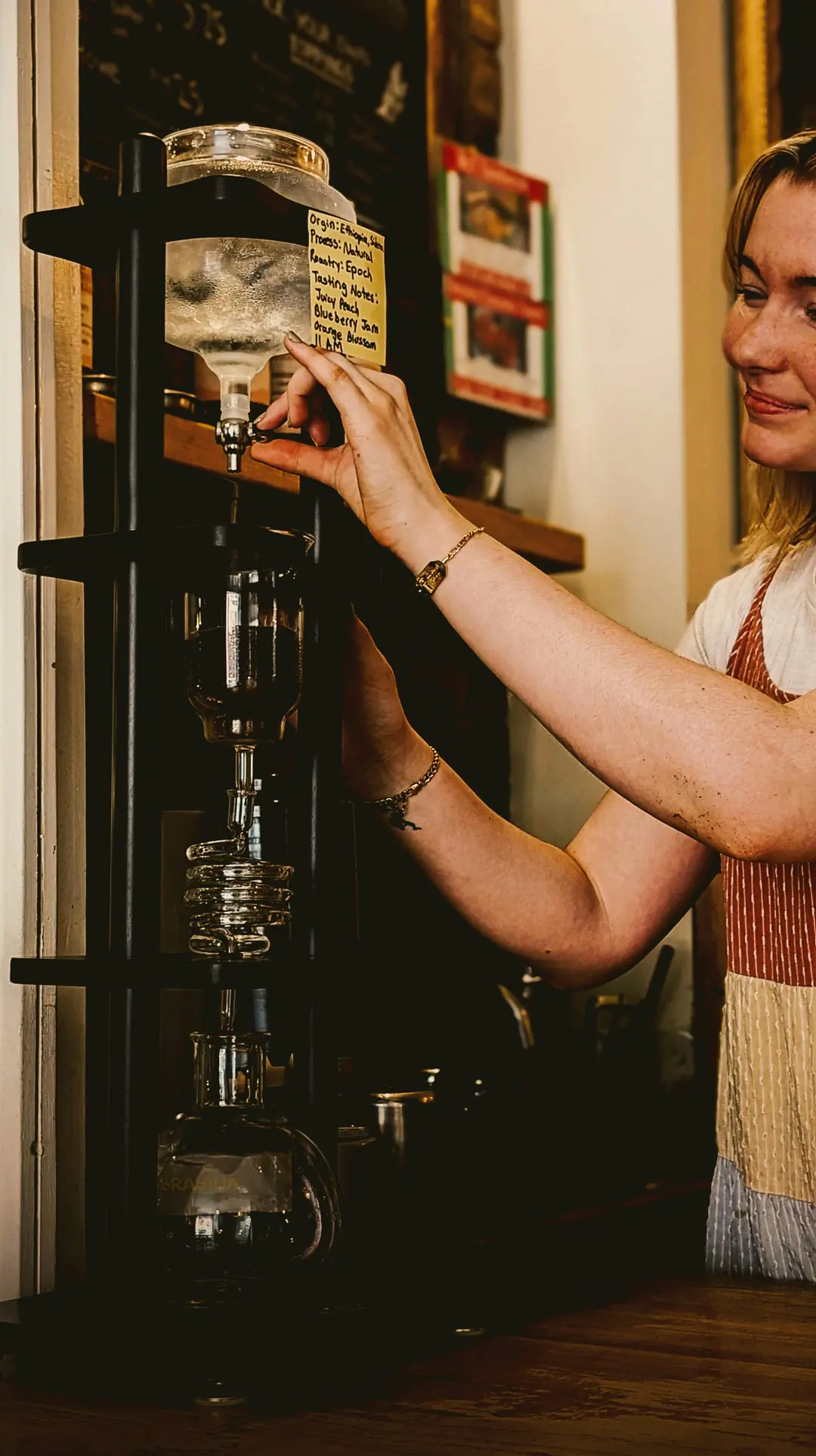 Cold drip yöntemi görsel olarak da dikkat çeker. Su, kahvenin üzerine damla damla eklenir. Bu süreç saatler boyunca devam eder.